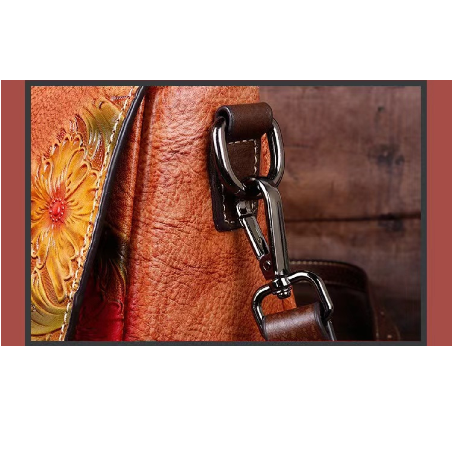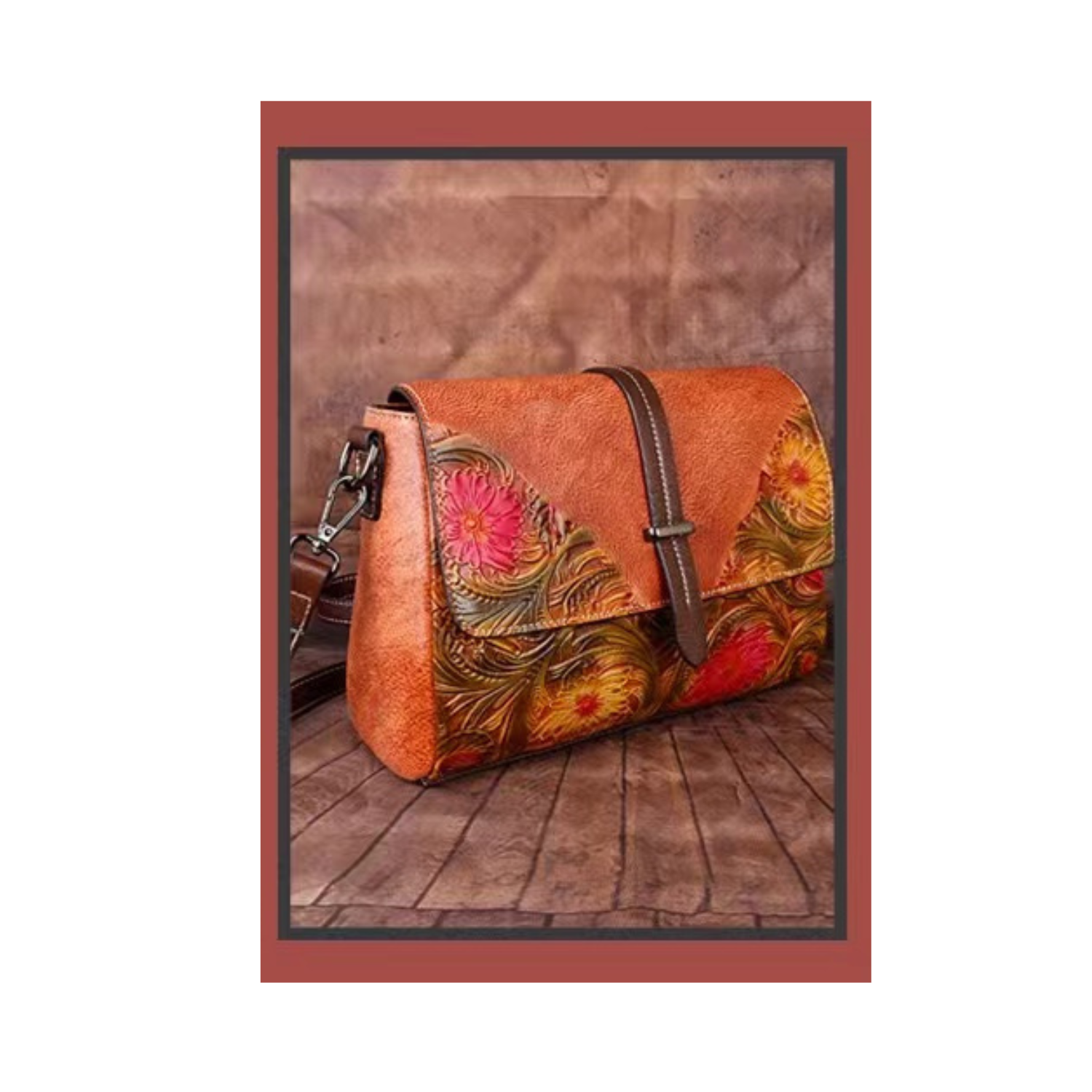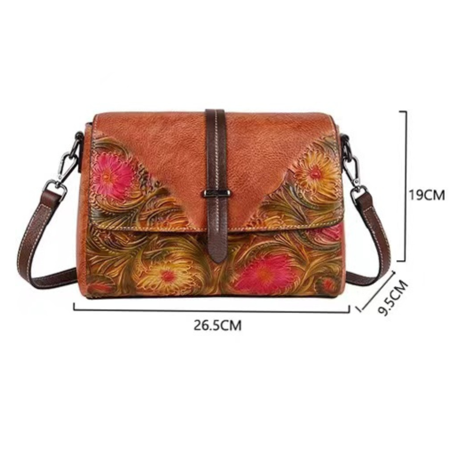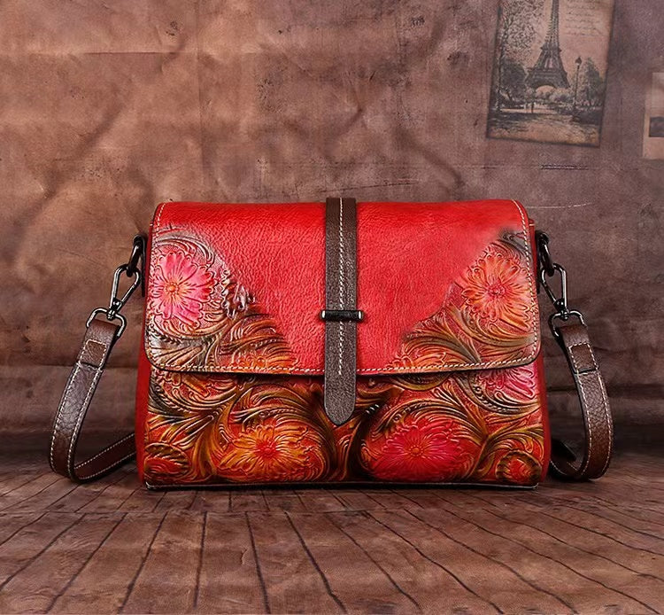 Aimee Genuine Leather Crossbody Bag for Women – Embossed Floral Shoulder Bag with Adjustable Strap, Vintage Designer Leather Purse, Satchel Style