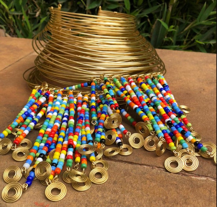 These Beautiful Brass Chokers are uniquely designed and 100% handmade. Style A is customized with beads. The necklaces are crafted to fit any neck.
