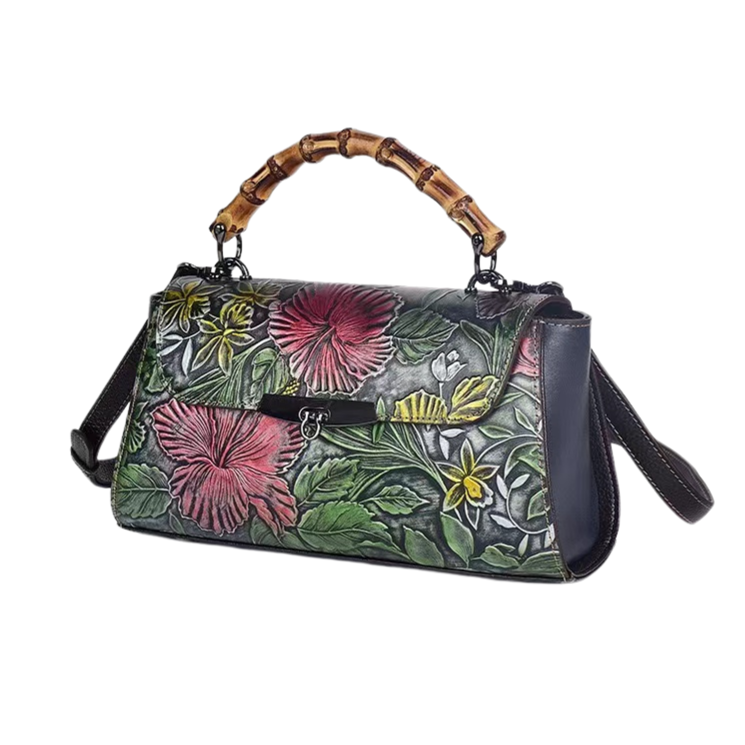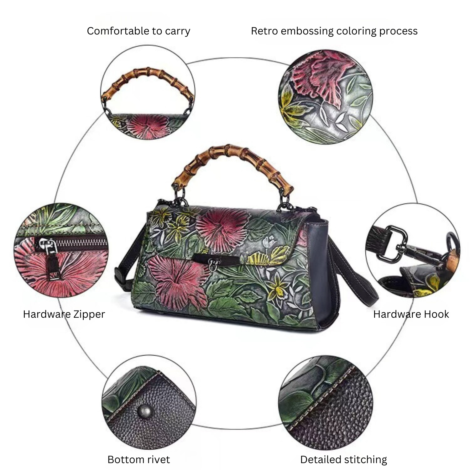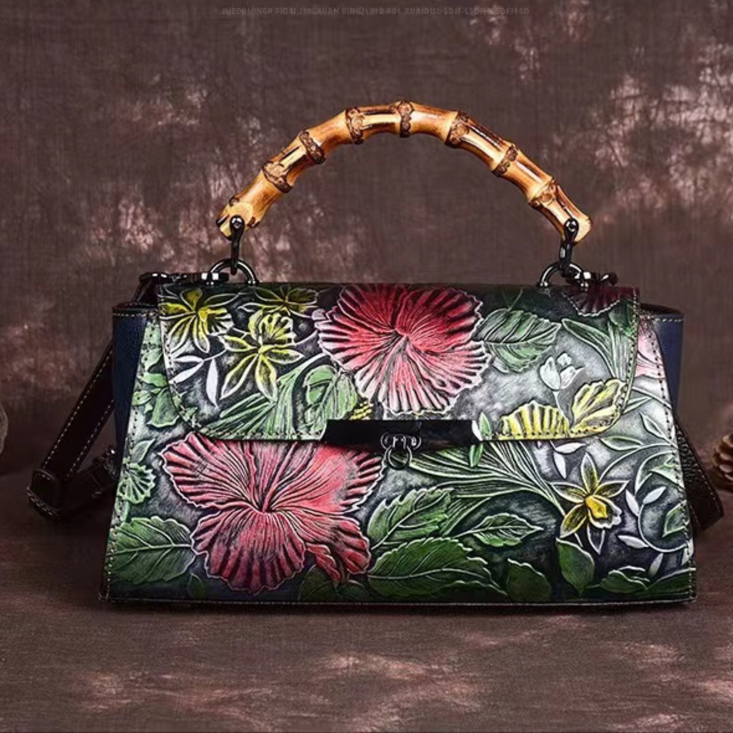 Celine's Luxury Leather Crossbody Bag for Women – Embossed Floral Handbag, Shoulder Bag with Adjustable Strap, Designer Leather Purse, Vintage Satchel