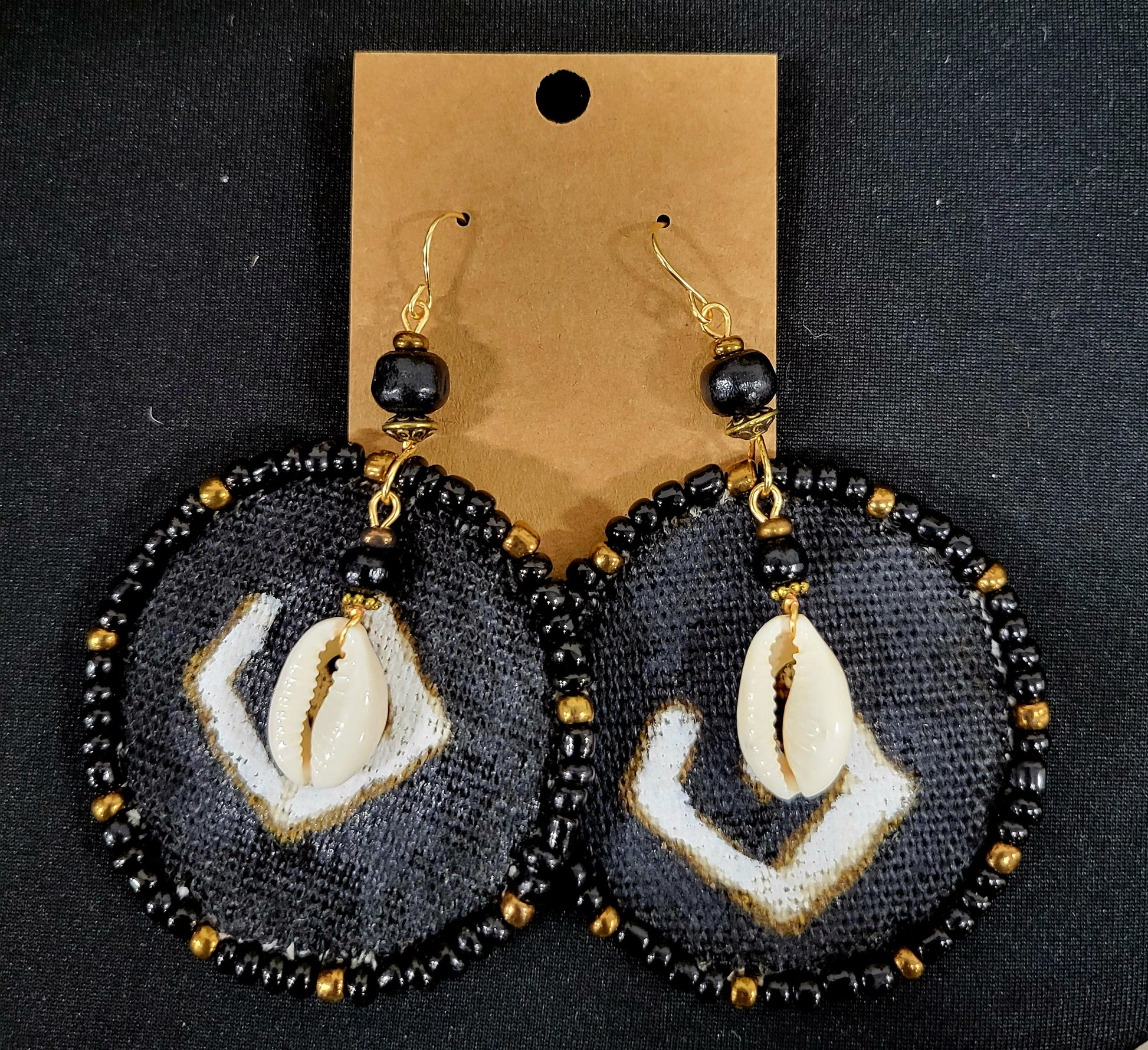 Adamas Large Beaded Mudcloth EarringsIntroducing Adamas' Large Beaded Mudcloth Earrings, a beautiful fusion of tradition and contemporary style. Handcrafted from authentic mudcloth fabric, these earrings showcase intricate patterns that reflect rich cultural heritage. The vibrant beading adds a unique flair, making them perfect for any occasion.