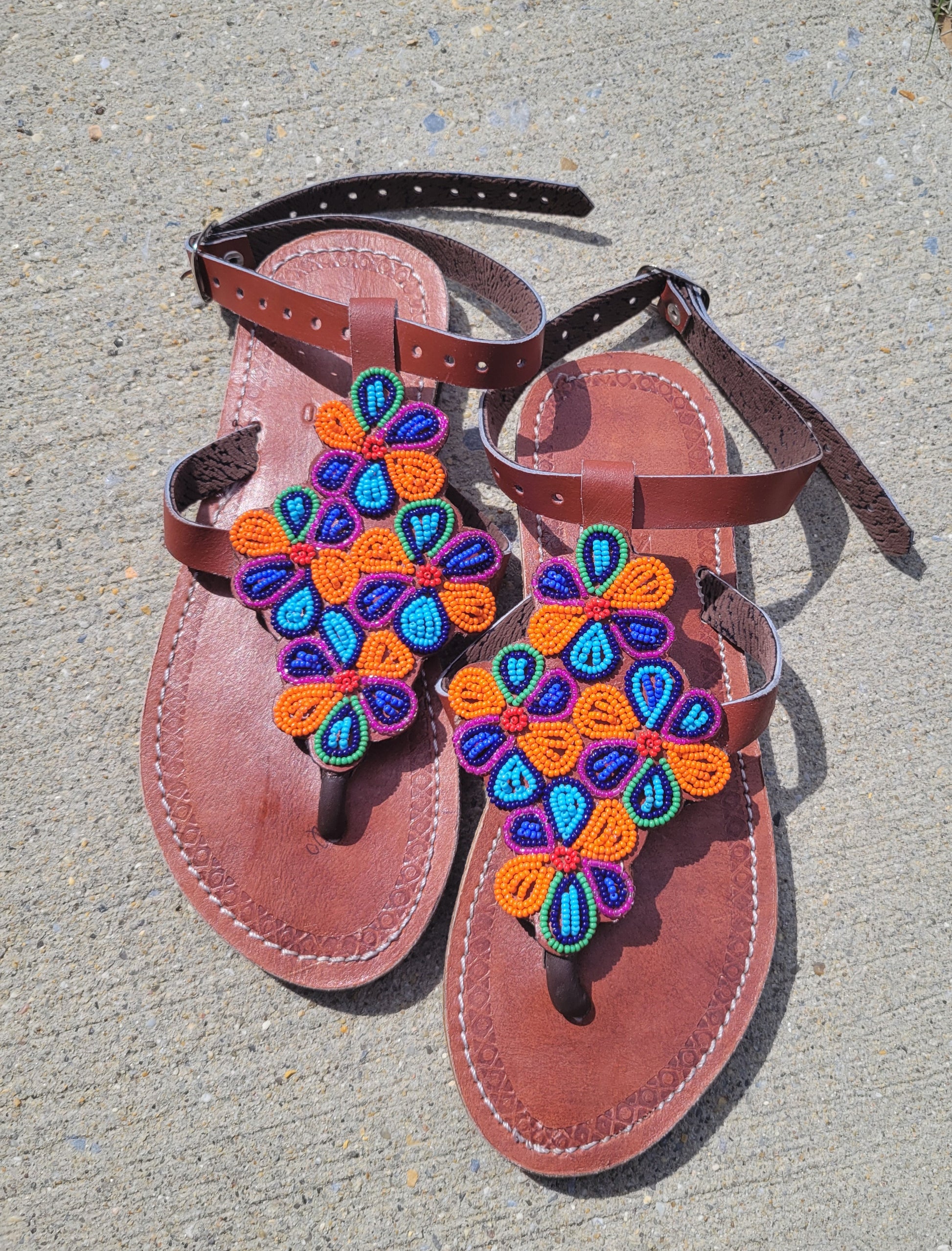 Maasai sandals, Leather gladiator sandals, beaded sandals for women.
