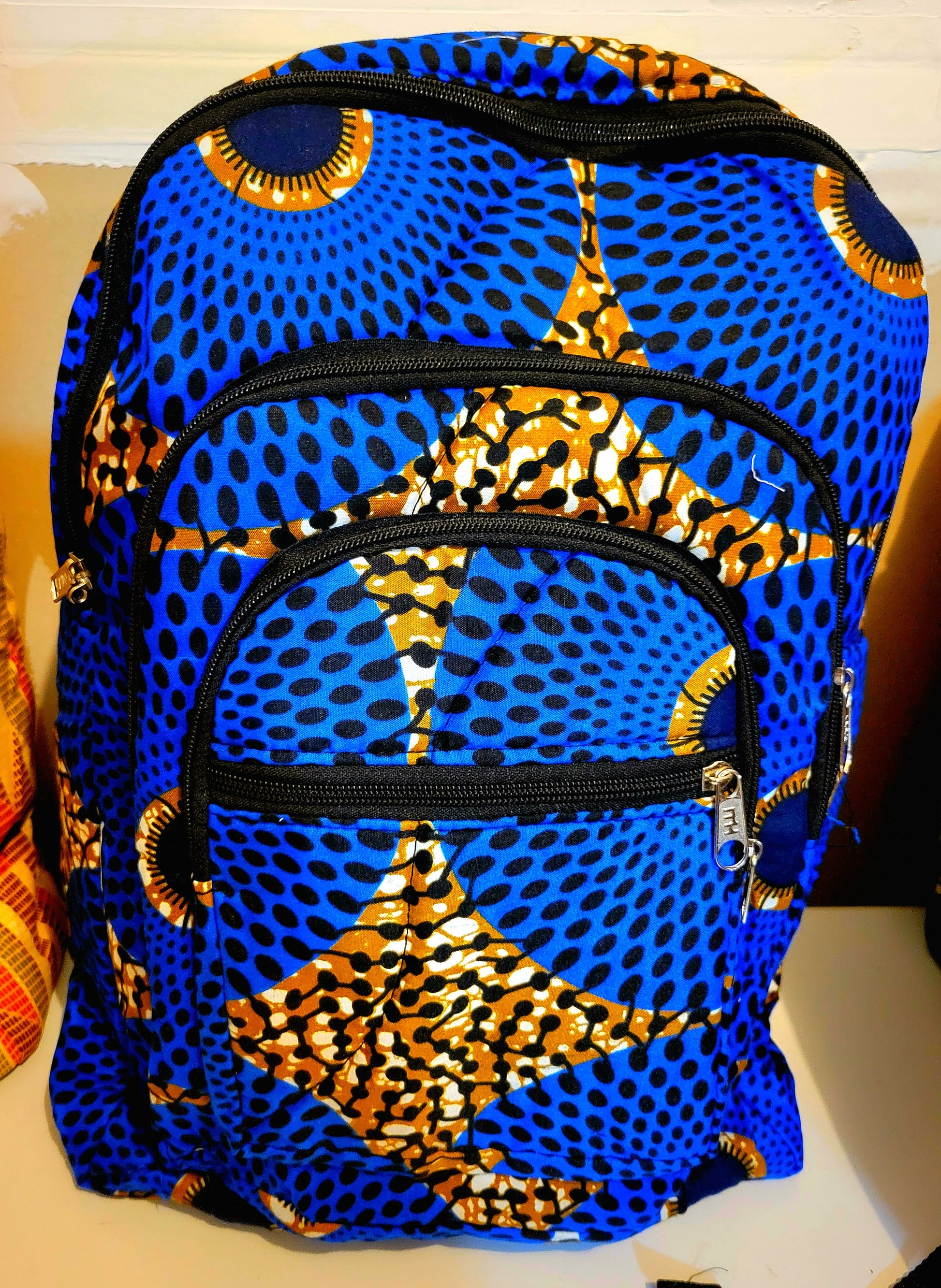 These gorgeous African patterned backpacks are comfortable with padding, and multiple options for organization. The Backpacks allow you to carry your laptop and other belongings in bold African style. There are multiple zippered sections for superior organization. The interior is spacious enough for everyday use, trips to the gym, or even weekend getaway trips.