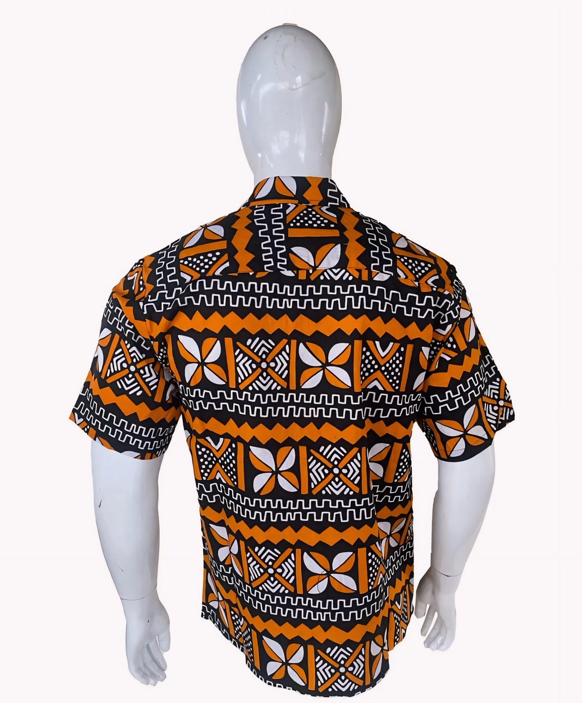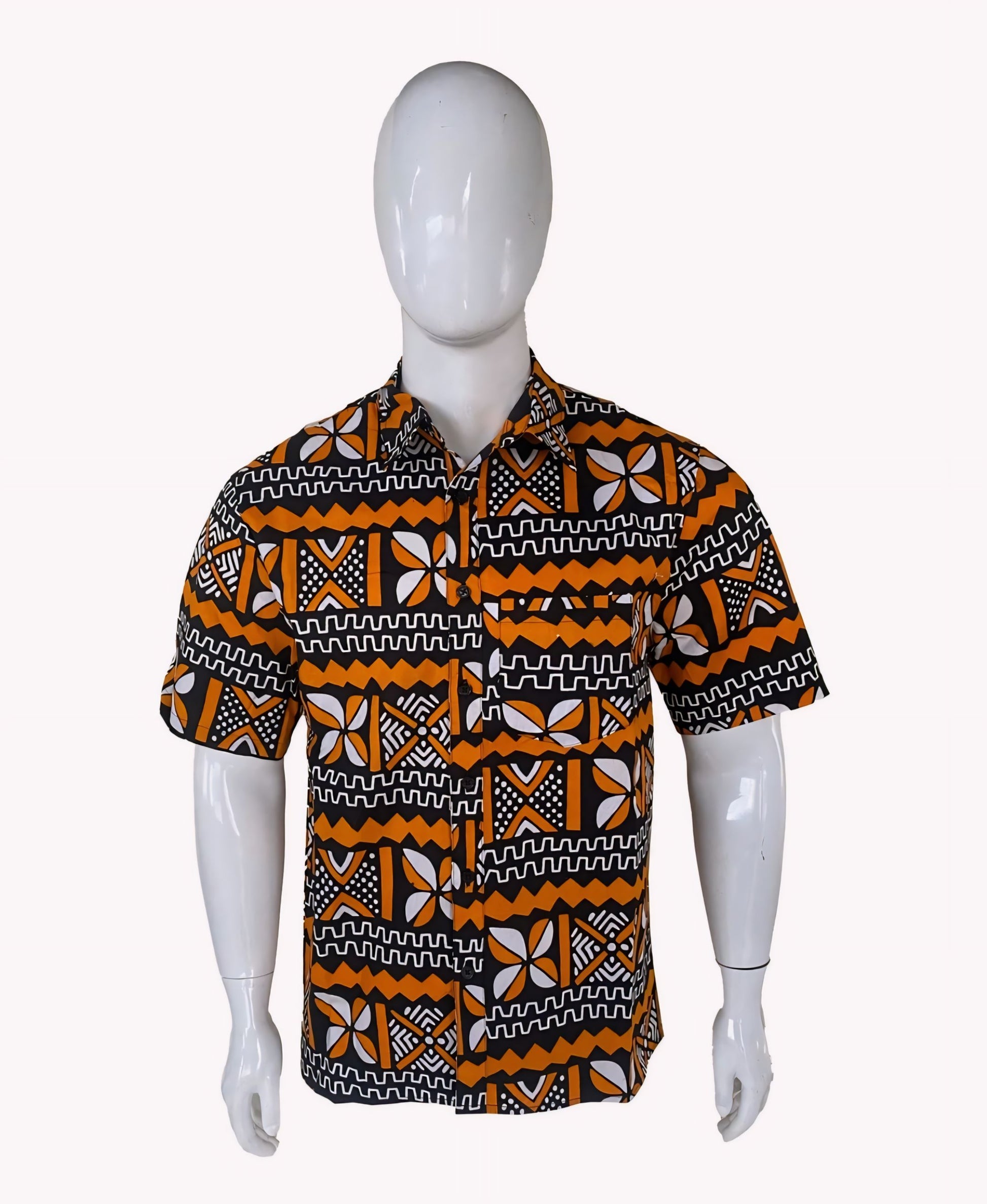 Elevate your style with Tamba's Men's African Print Button-Up Shirt. Made with premium fabric and bold colors, this shirt makes a statement. Embrace the vibrancy and culture of Africa in your wardrobe!