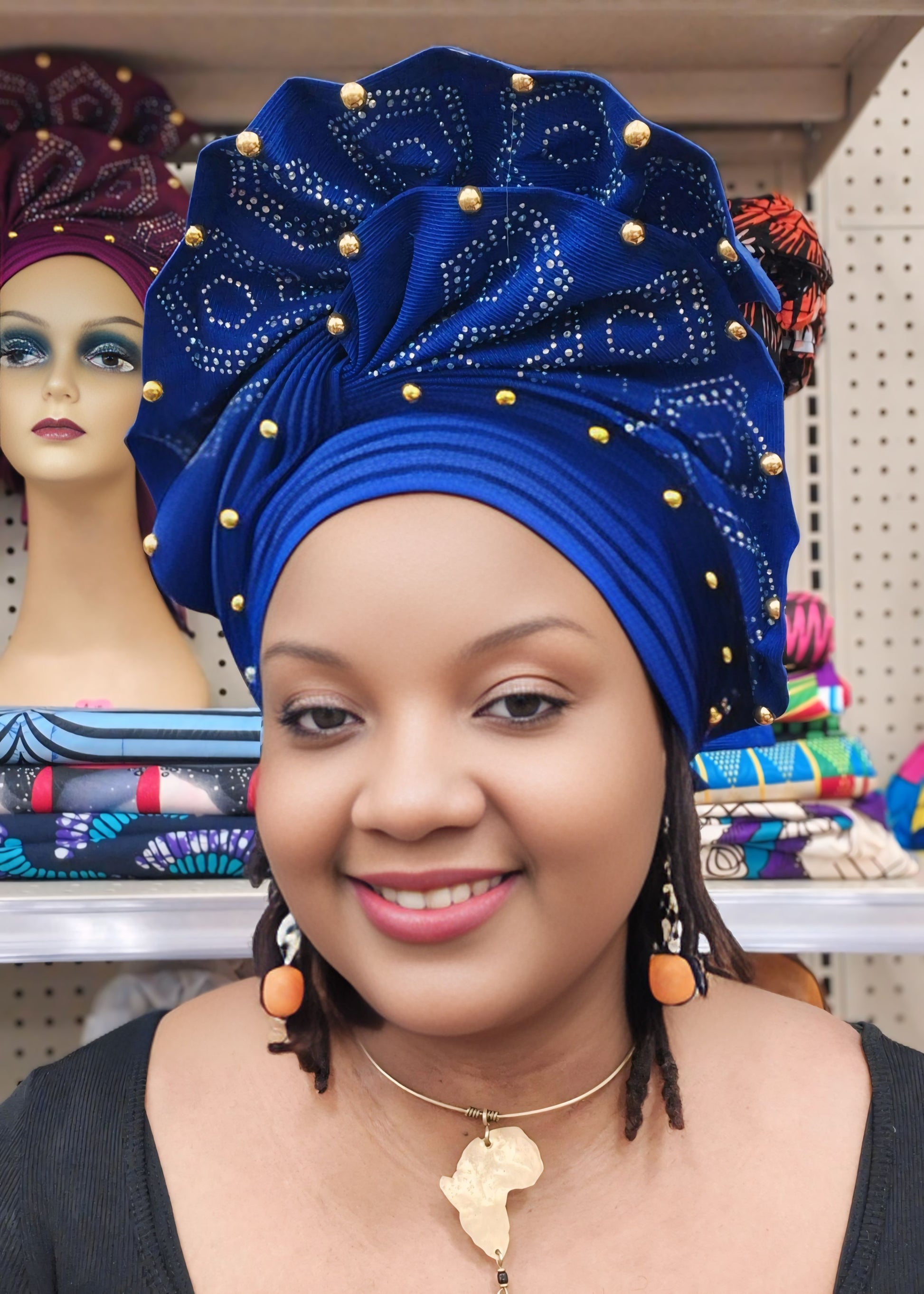 - 100% High Quality! Luxury Nigerian Gele Headties with Beads and Stones ,Already Pretied.