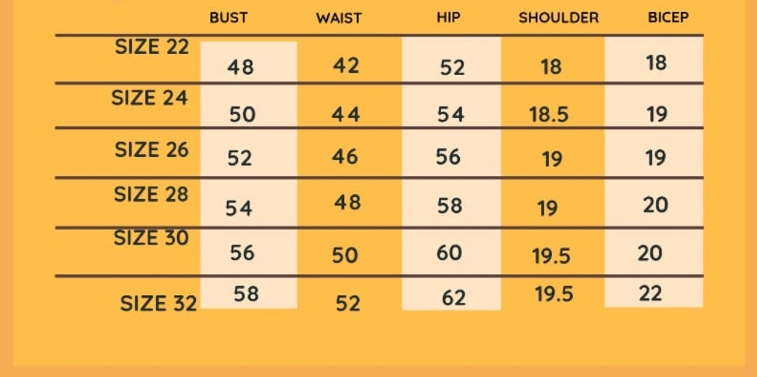 Our size charts are specifically tailored to each unique outfit, ensuring a perfect fit.