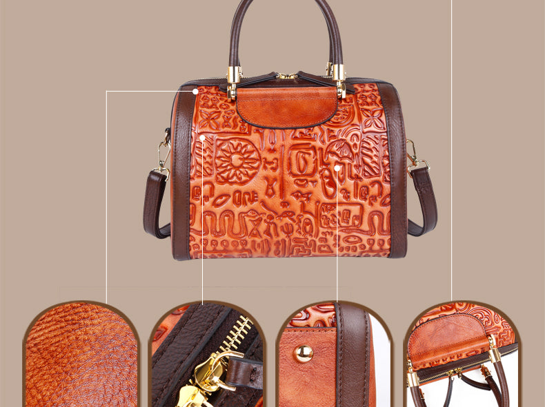 Yahden's Bone Script Luxury Vintage Genuine Leather Women Handbag