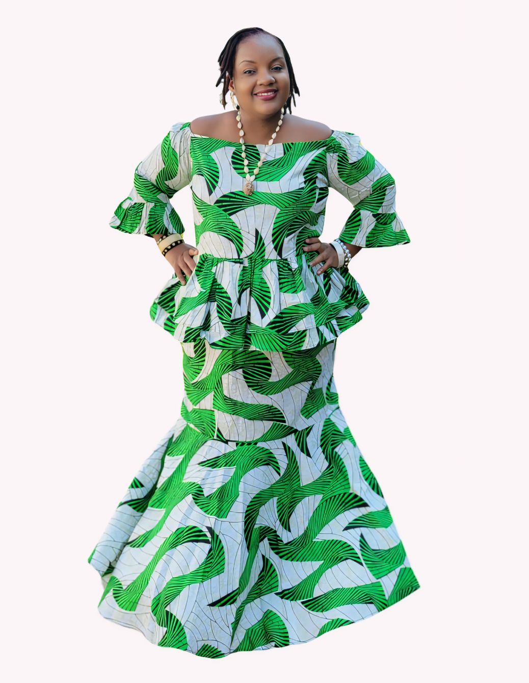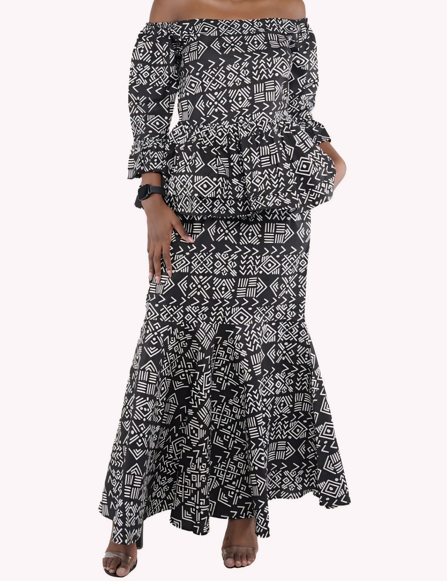Yahden Women Ankara Off Shoulder Top and Fish Tail Skirt Set-Print B &C