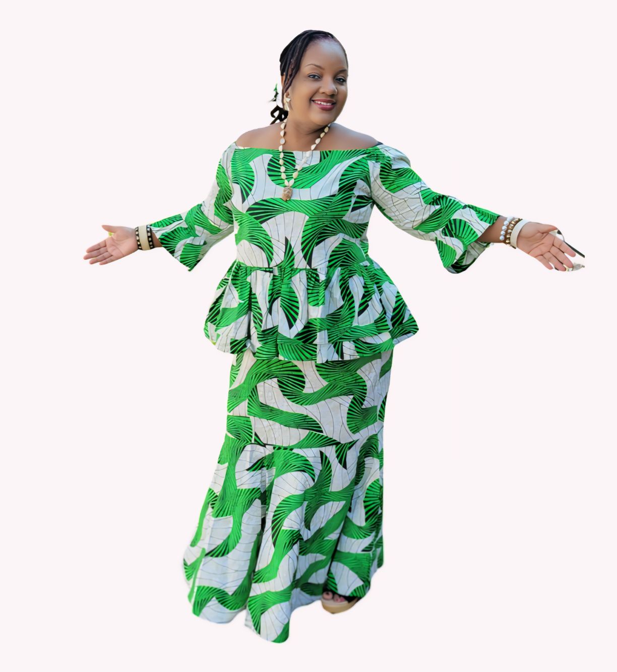 Make a statement this fall with our Yahden Women Ankara Off Shoulder Top and Fish Tail Skirt Set! This versatile outfit is perfect for transitioning from warm to cool weather. Whether you're attending an Alpha Kappa Alpha Sorority event or just looking for a stylish ensemble, our set has got you covered. And with two convenient pockets and a matching head wrap, you'll be both fashionable and practical. Available in one size for the perfect fitting.